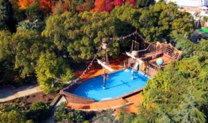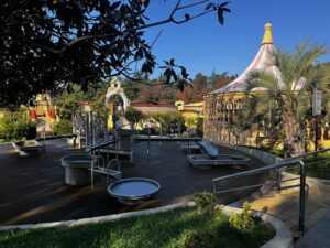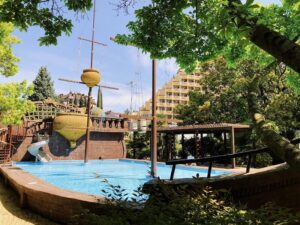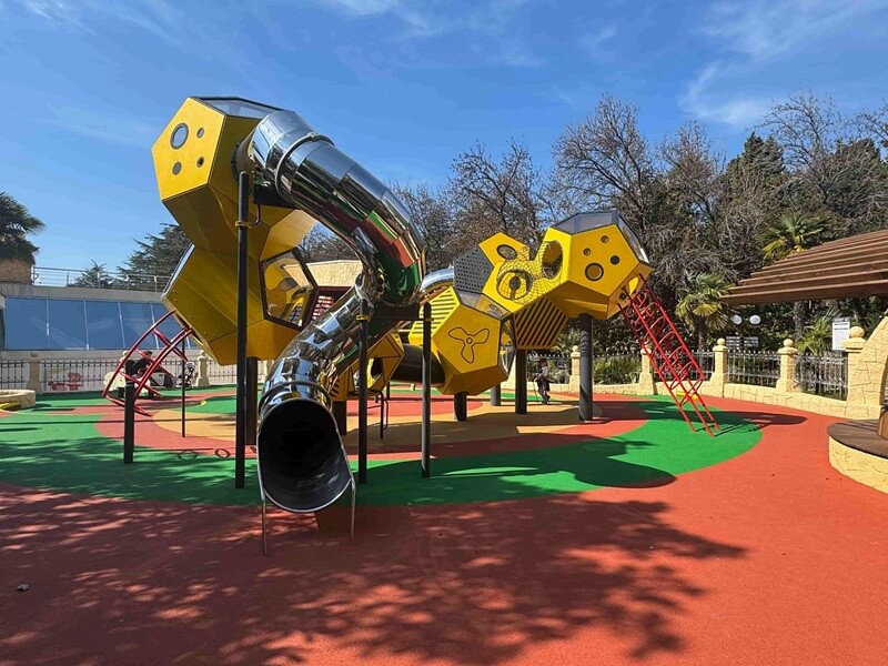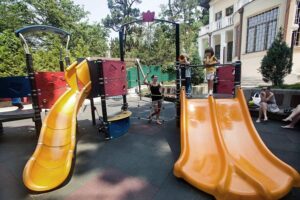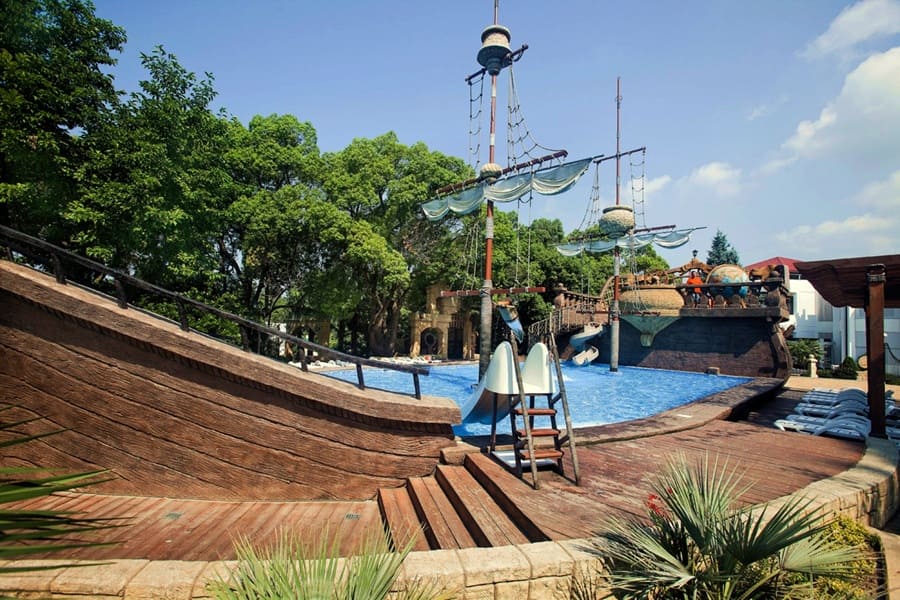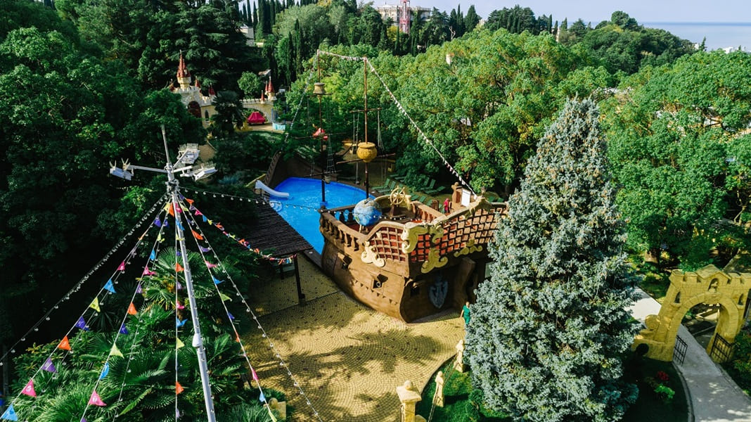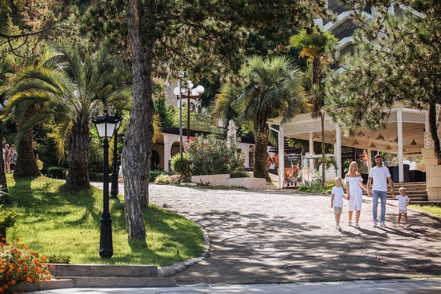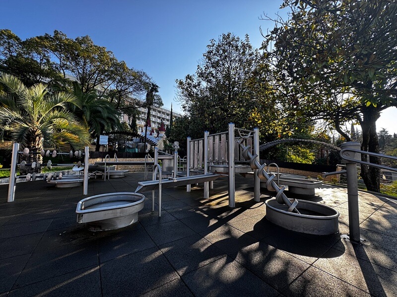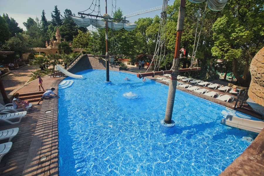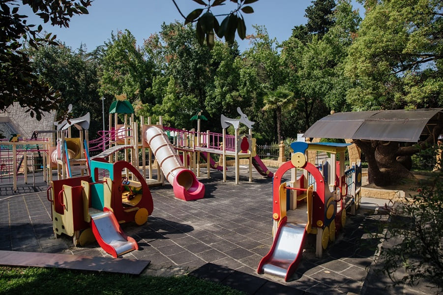 В санатории для детей созданы все условия для комфортного отдыха и развития. Малыши могут весело провести время на аттракционах, поплавать в детском бассейне с горками или в детском отделении открытого бассейна. Для активных игр предусмотрен детский городок.