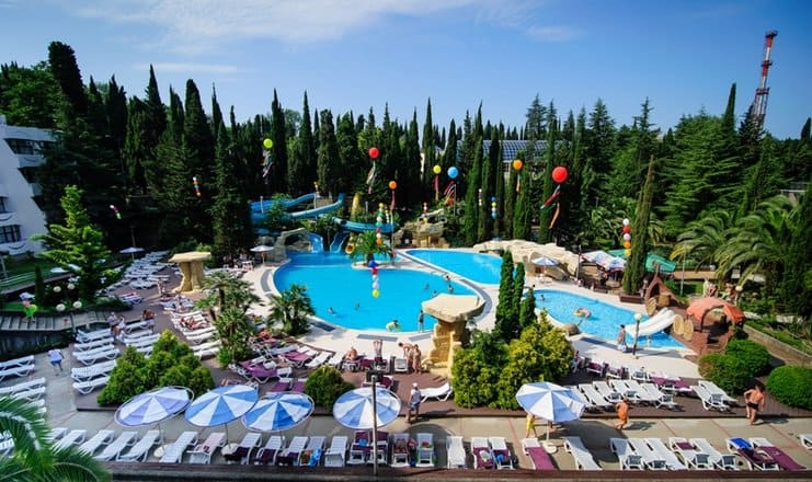 пользование открытыми бассейнами с мини-аквапарком (в период с мая по октябрь; функционирование открытых бассейнов в летний период может быть скорректировано Администрацией санатория)