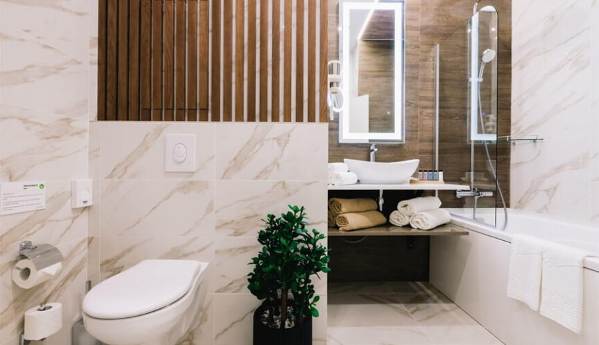 В санузле с ванной или душем вас ждут тапочки, туалетные принадлежности, фен и халат.
