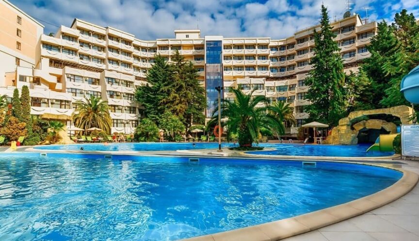 пользование открытыми бассейнами с мини-аквапарком (в период с мая по октябрь; функционирование открытых бассейнов в летний период может быть скорректировано Администрацией санатория)